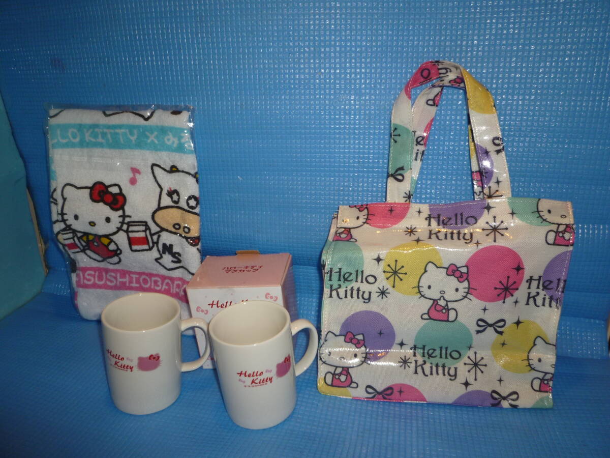 - b★未使用品★2010年ハローキティ ラミネート加工ランチトートバックとマグカップ2個他4点