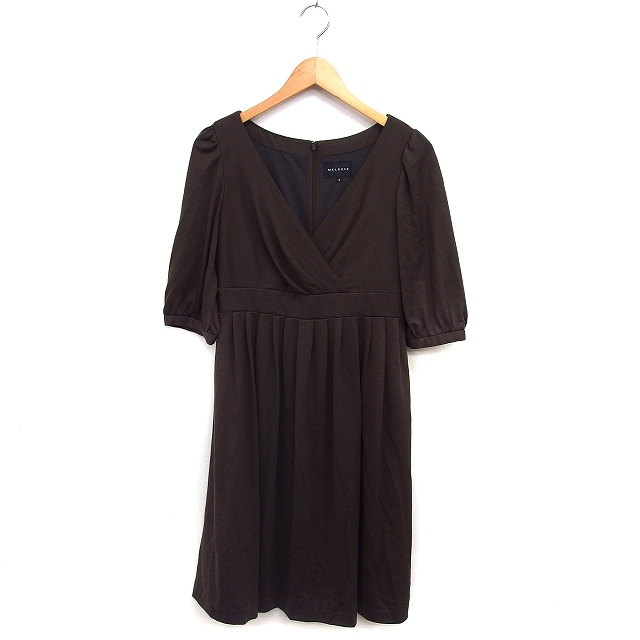 > メルローズ MELROSE ワンピース フレア ひざ下 ウール タック バックジップ 五分袖 4 茶 ブラウン /NT8 レディース