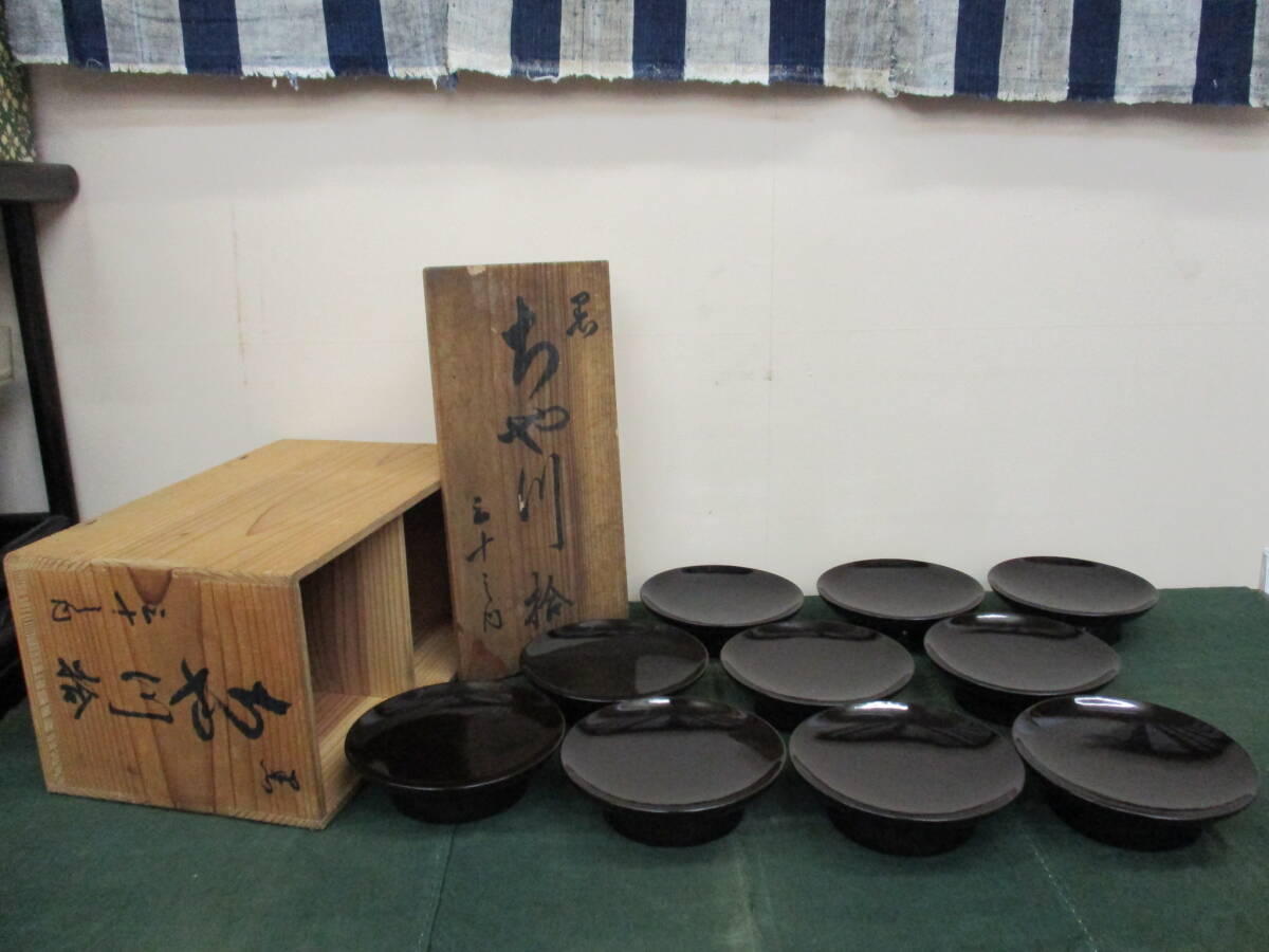 - 〈黒漆 楪子 10客〉NO012 検/漆器 椿皿 銘々皿 干菓子盆 輪島塗 根来塗