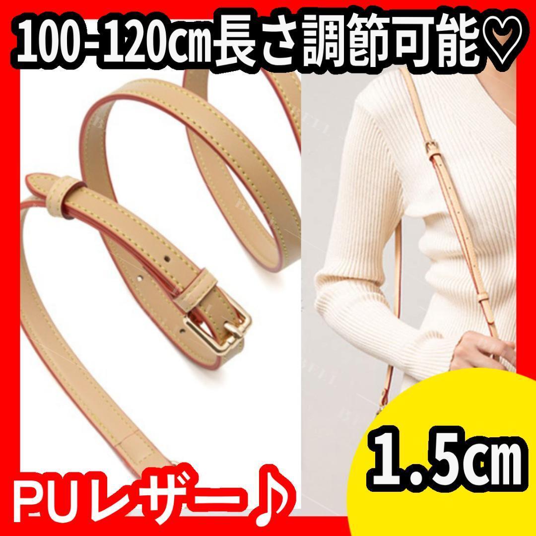 - ショルダーベルト★PUレザー★1.5cm★ベージュ★ストラップ★長さ調整可能