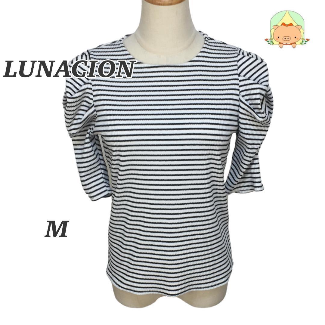 - CA0159 ルナシオン ボリュームスリーブ ラウンドネック ボーダー リブ カットソー 【M】