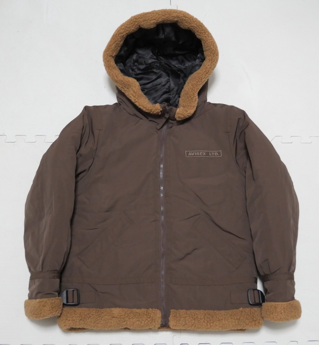 - AVIREX レディース 中綿 ボア フードジャケット 茶 M 美品 アヴィレックス