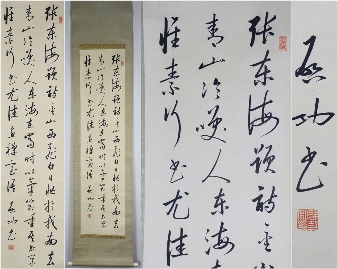 - 古美術 掛け軸 中国・近現代 「啓功書」 紙本 【詩語書道】 立軸 書道 巻き物 肉筆保証 唐物 古画 画心31.5X130cm LT-241115
