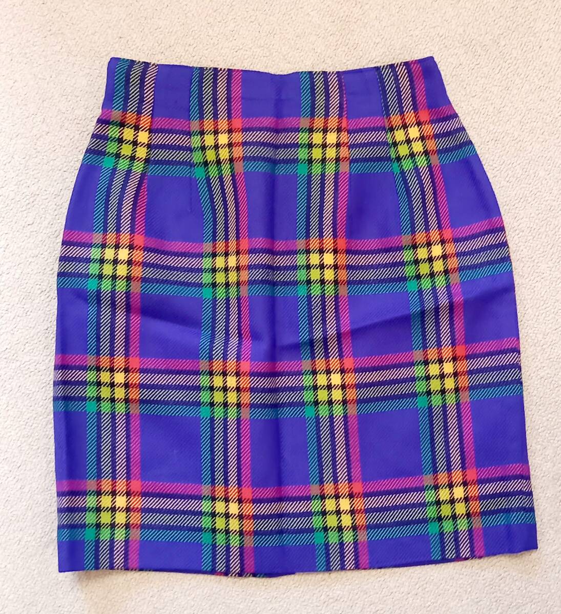 - ☆ レディース スカート Lサイズ 青地にチェック (古着)