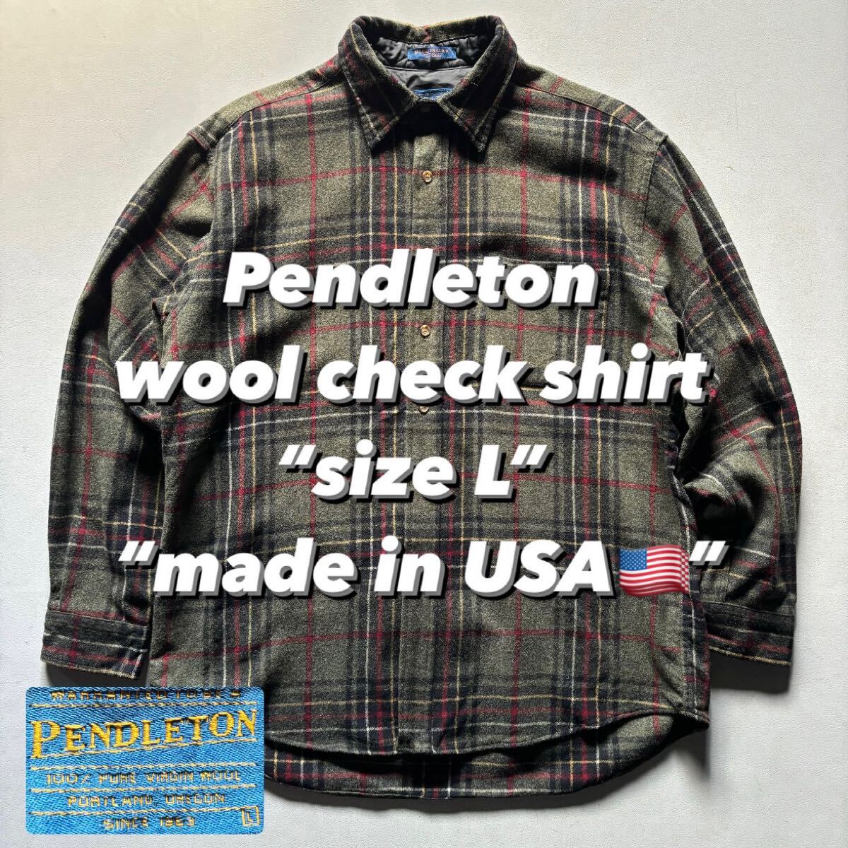 - Pendleton wool check shirt “size L” “made in USA” ペンドルトン ウールシャツ チェックシャツ カーキ アメリカ製 USA製 長袖シャツ