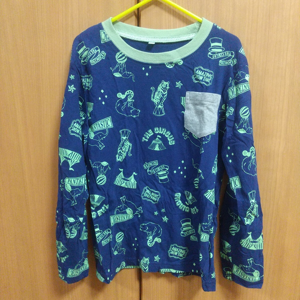 - 【2回着用の中古】長袖Tシャツ サーカス柄 サイズ130 ネイビー