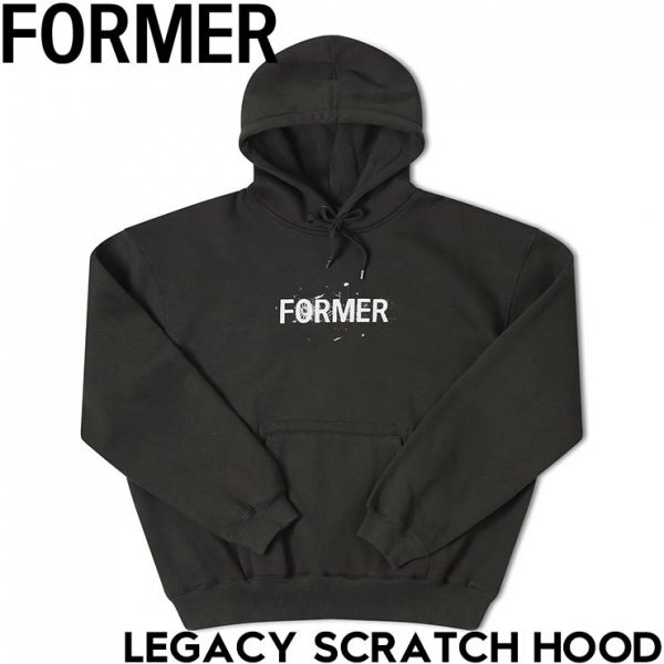 The Legacy Scratch Hood features a front graphic in a soft hand plastisol screen print and FORMER branded metal aglets