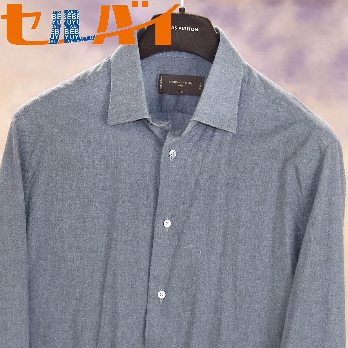 > 本物 ルイヴィトン 絶盤 最高級イタリア製 シェル釦 ピュアコットンシャツ メンズ40/16 長袖 トップス 国内正規品 LOUIS VUITTON