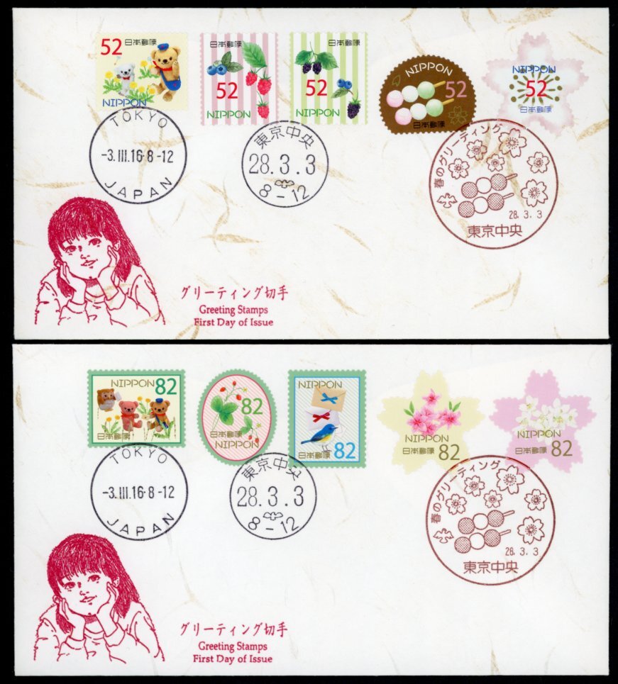 - 0742 【FDC】2016春のグリーティング[東京中央/28.3.3/鳴美版](解説書なし)