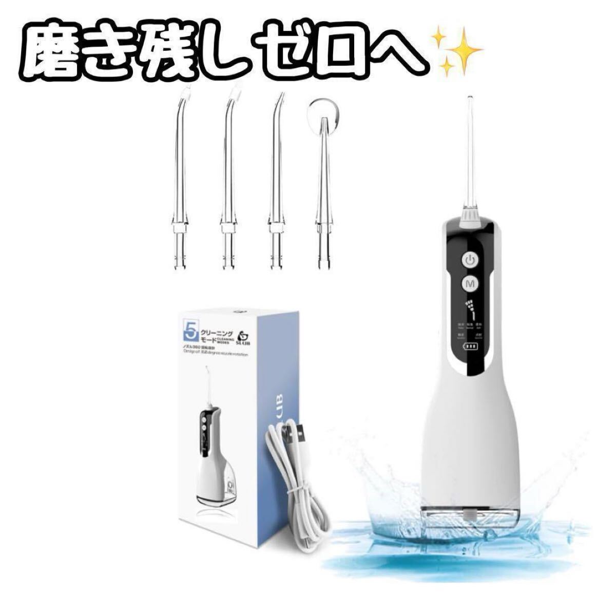 - 口腔洗浄機 330ml水タンク 5つモード IPX7防水 歯間ジェット