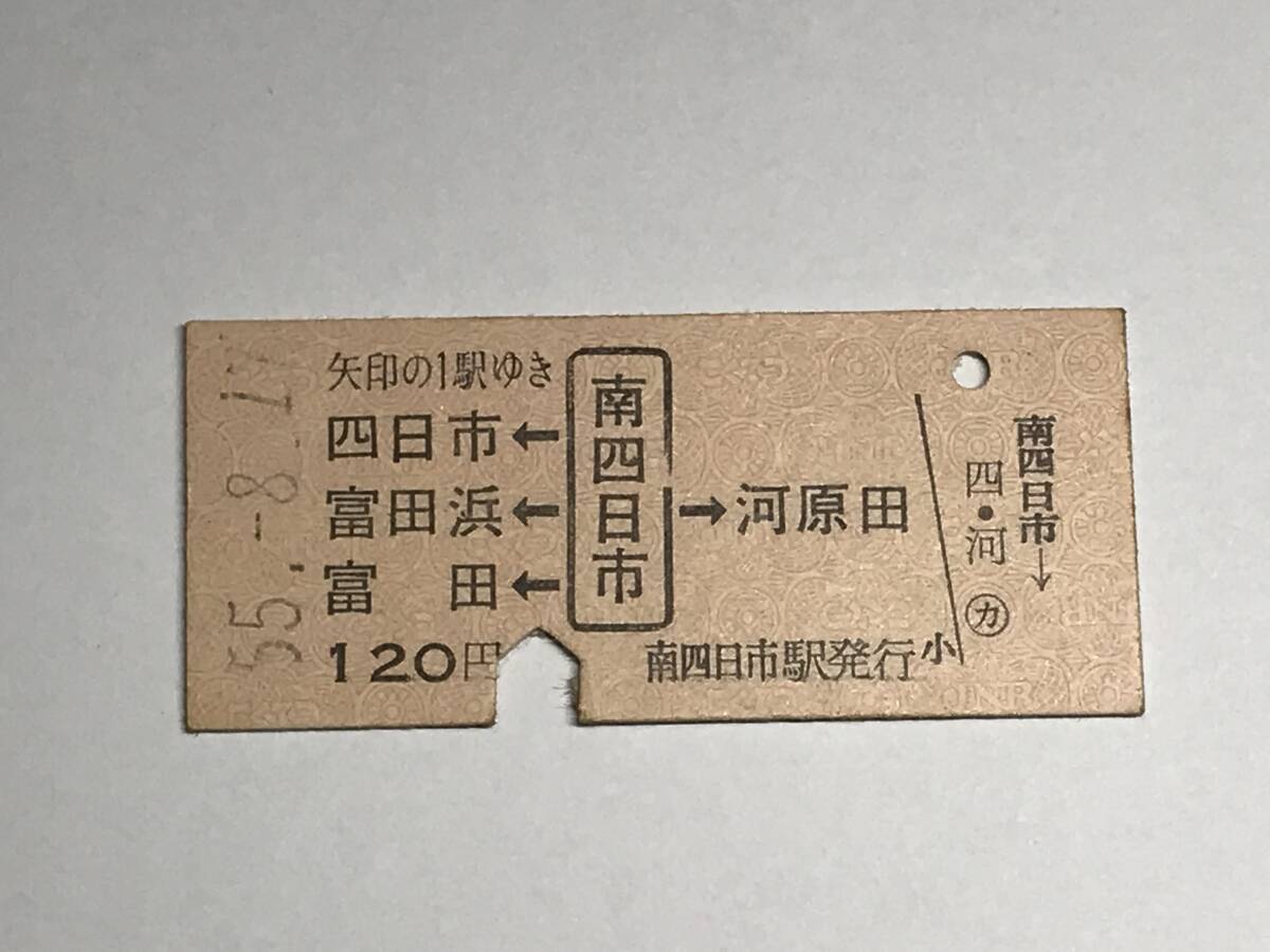 - 昔の切符 きっぷ 硬券 国鉄 南四日市駅発行 四日市・富田浜・富田←南四日市→河原田 120円 サイズ:約2.5×5.8㎝ HF5108