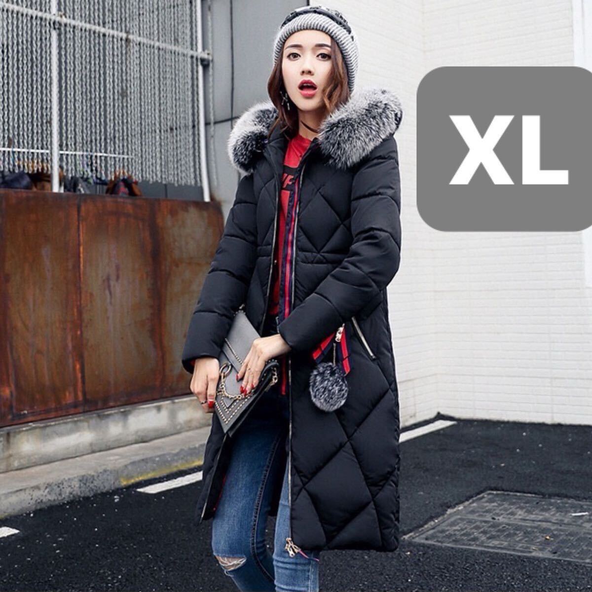 - ロングコート ダウン 中綿 ダウンコート ファー トレンド レディース マタニティ セレブ ファー ブラック 黒 XL