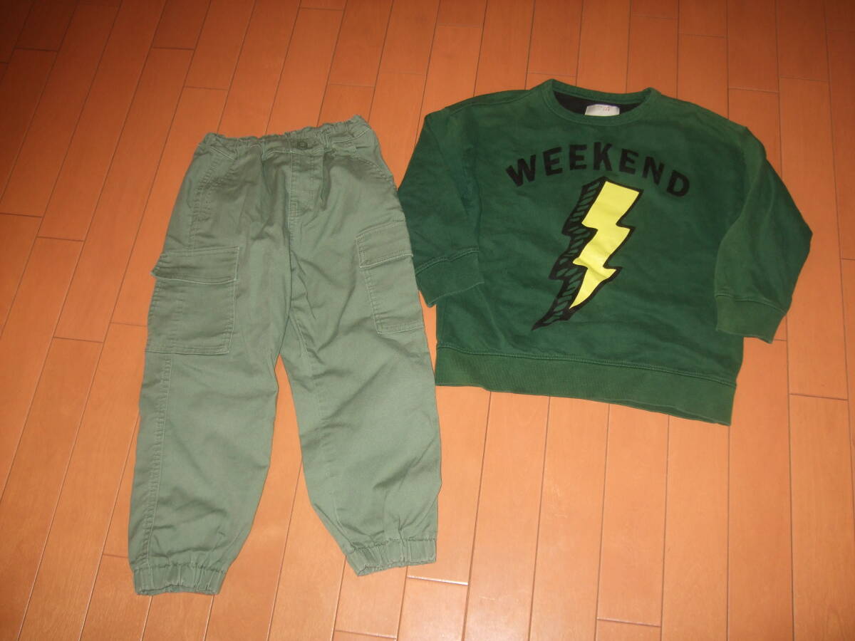 > 【上下セット】送料込即決 ボーイズ ユニクロカーゴパンツ120×ZARA デザインスウェット8歳