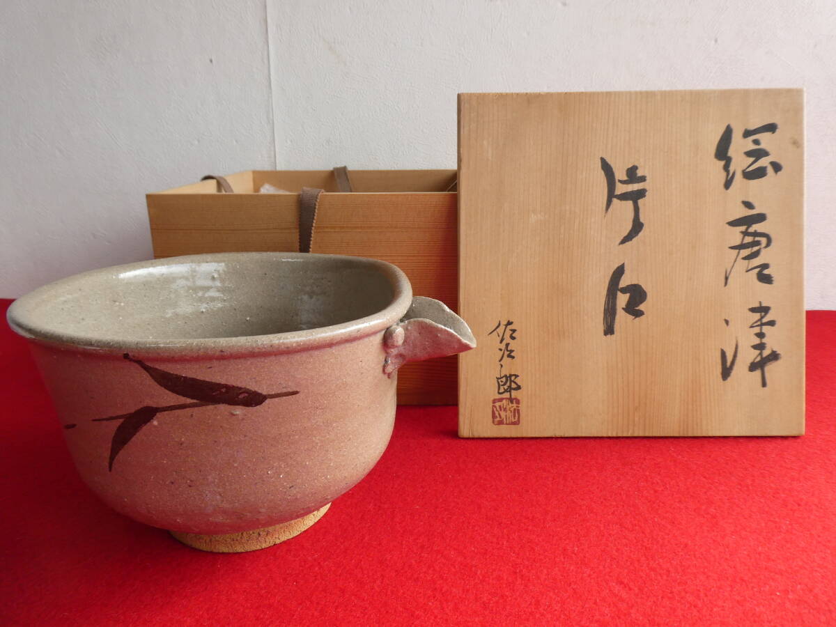 - 【真作】田中佐次郎 絵唐津 片口 大鉢 共箱■酒器■菓子鉢や料理を盛る器にも■