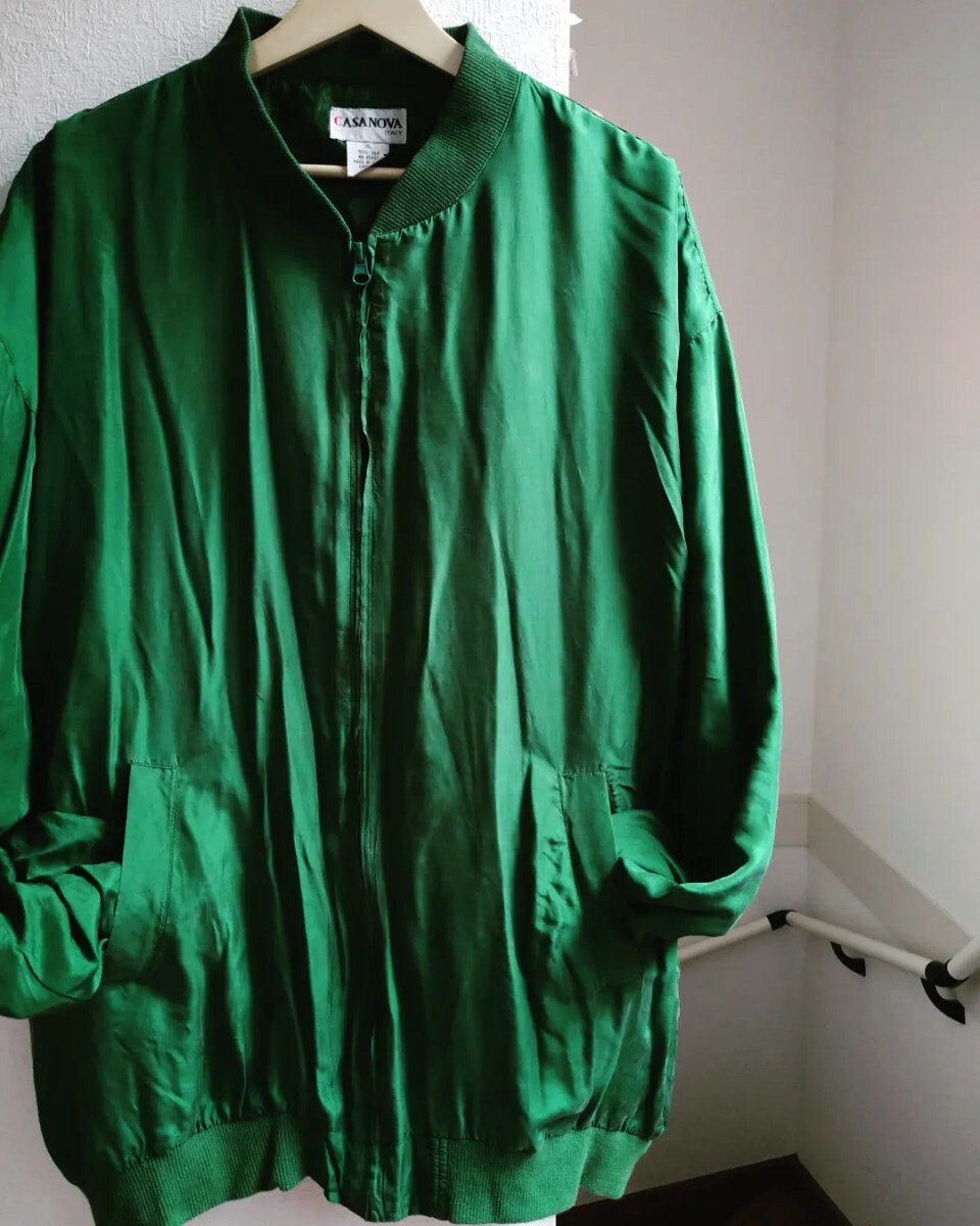 > 即決 90年代 シルク 100% 無地 グリーン ビッグサイズ シルクブルゾン ブルゾン ジャケット ビンテージ チャンピオン ビッグ