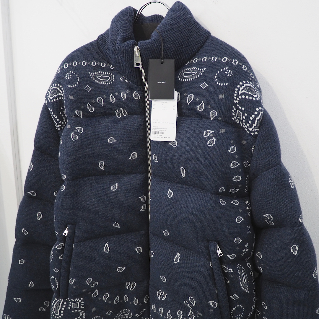 - 新品 定価498300円 アラヌイ 22aw バンダナ柄 ニット ダウン ジャケット 紺 ネイビー メンズ M L サイズ ALANUI ペイズリー 高級 ブルゾン