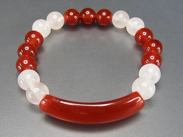 - 一点物カーネリアンプレート約8mm玉デザイン天然石ブレスレットUK1-1-02a