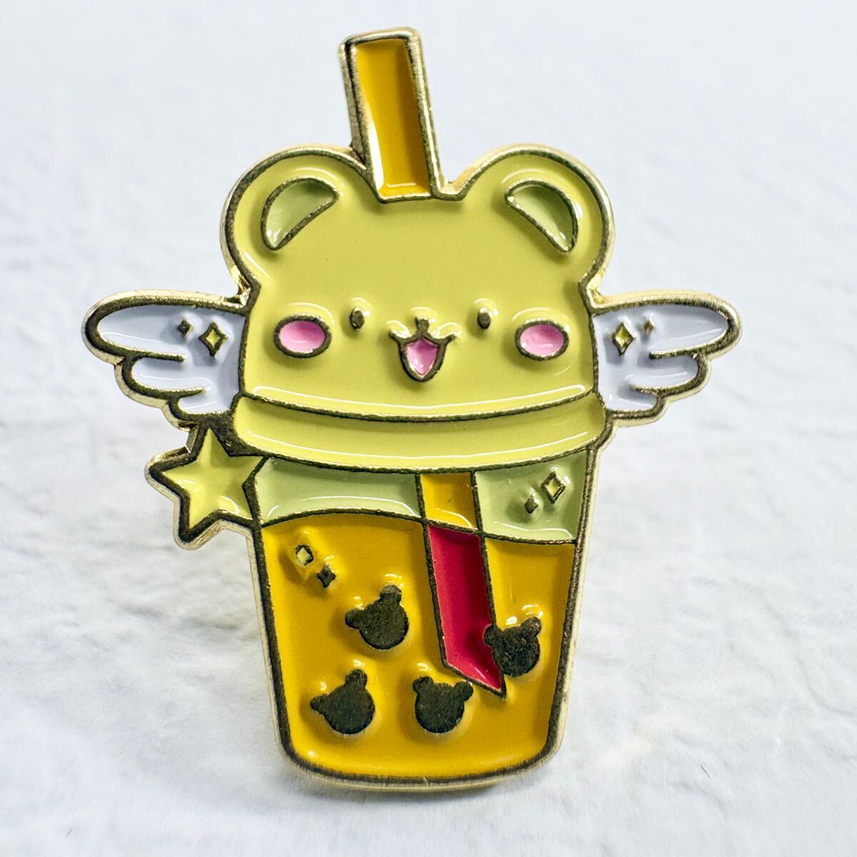 - 【ピンバッジ】くまさん 昭和レトロ ジュース タピオカ メルヘン