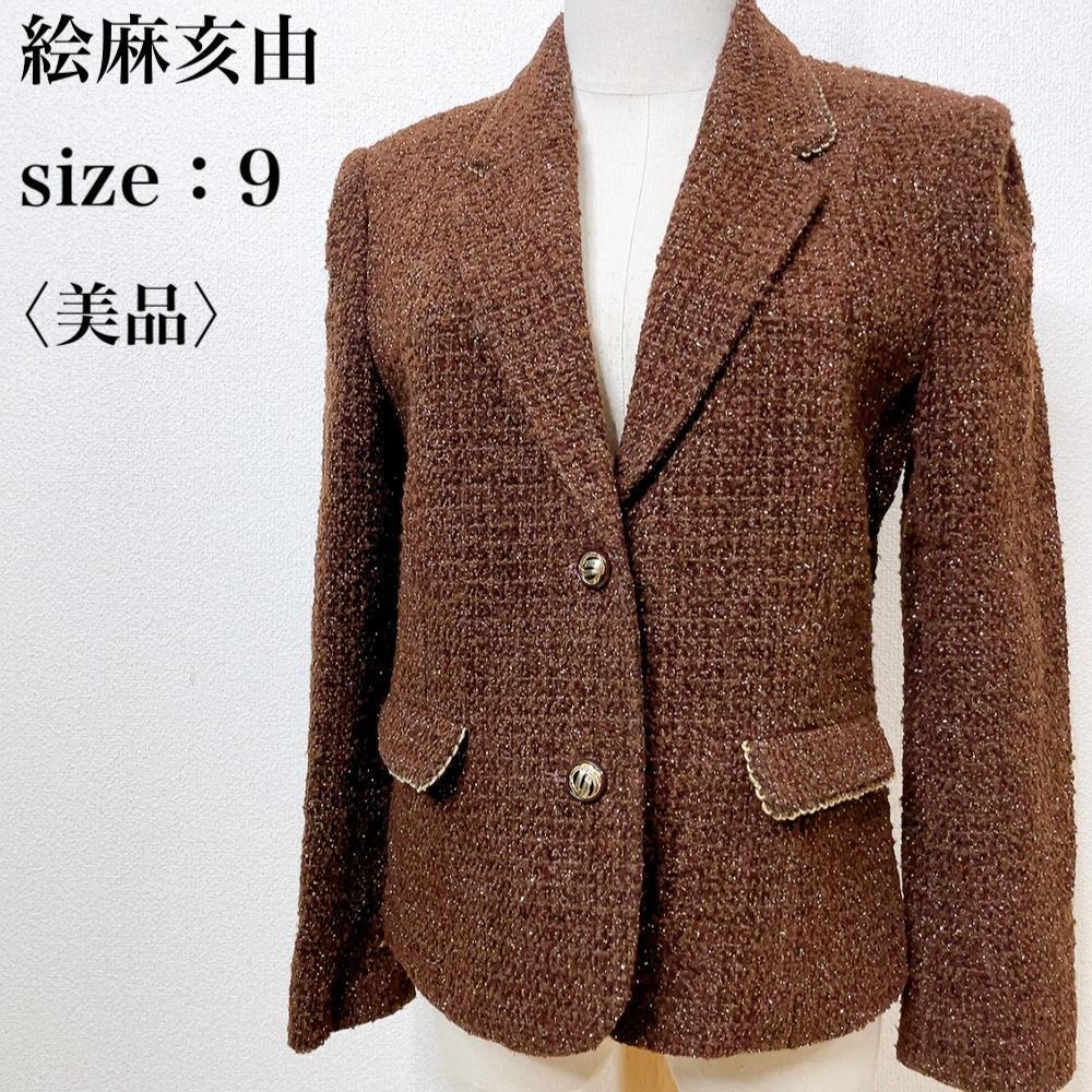 > 【美品】絵麻亥由 東京自由が丘 高級感 ラメ入り 上品 テーラードジャケット シングル カジュアル エレガント エマイユ宮本 ゆ44