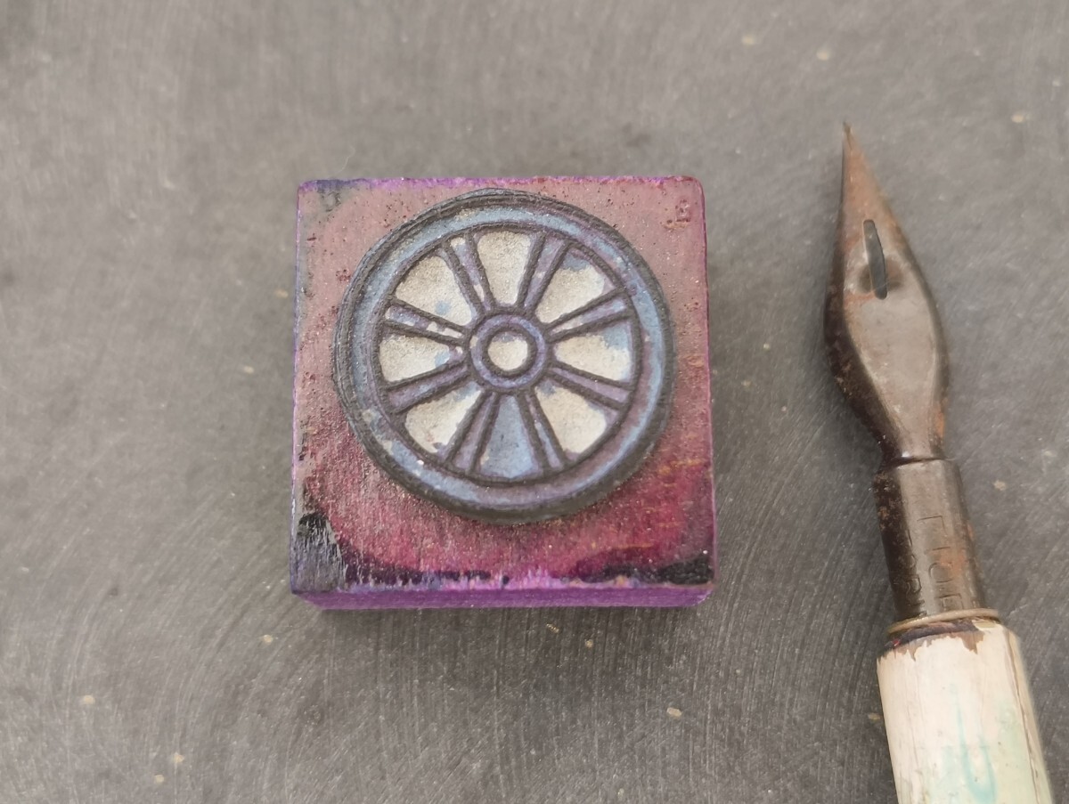 - ミニ 木の色が綺麗 車輪 木製 円板 古代 馬車 フランス アンティーク スタンプ ヴィンテージ はんこ イラスト 素材 古道具