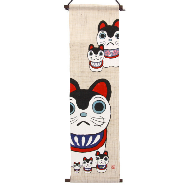 - 型染めタペストリー 招福張子犬尽くし 麻100% 日本製 開運招福 張子犬 縁起物 いぬ好き イヌ 掛け軸 和 和雑貨 お歳暮 お年賀 贈り物