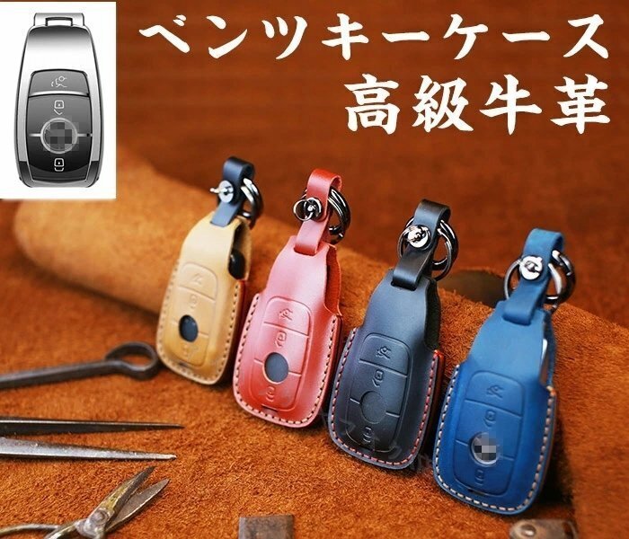- 新品ベンツ 対応キーケース メルセデスベンツ スマートキーケース 牛革 ベンツW213 E200 E220d E250 E300 E400 C260L c300 S320Lブルー