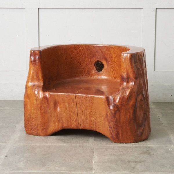 - IZ77730N★世界自然遺産 屋久杉 無垢材 チェア 応接椅子 肘掛け くりぬき椅子 大臣椅子 豪華 重厚 銘木 和家具 和モダン リビング 天然木