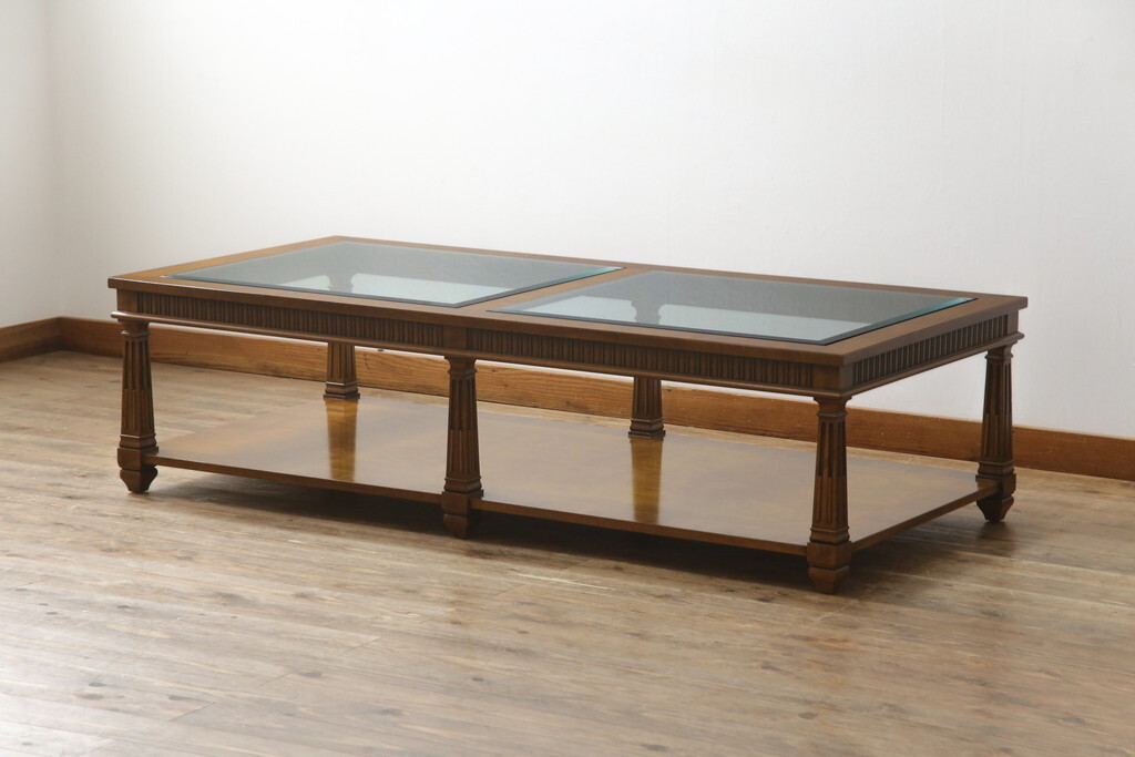 - R-065859 中古 DREXEL HERITAGE(ドレクセルヘリテイジ) ガラストップのセンターテーブル(ローテーブル,リビングテーブル,カクテルテーブル)