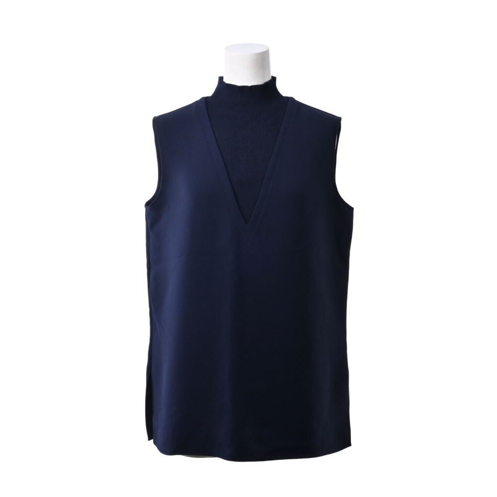 > theory RIB V SHELL CREPE COMBO ノースリーブ トップス S ネイビー セオリー KL4BCBHL50