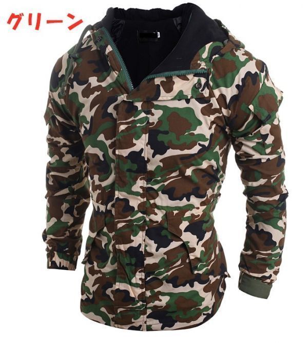 - 中綿ジャケットカモフラ柄ジップアップ 迷彩柄パーカ ジップパーカー アウターフード付きジャケット防寒アウター DJ277