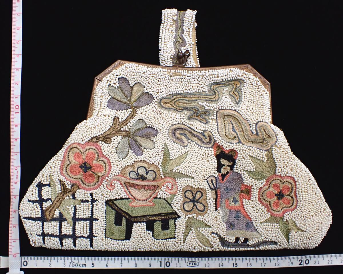 - ヴィンテージバッグ 和装 FOREIGN ビーズ刺繍 刺繍 がま口バッグ アンティークバッグ ヨーロッパ アンティーク小物 アンティークビーズ