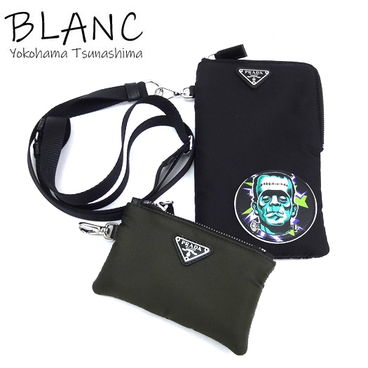 - プラダ フォンポーチ 携帯ケース コインケース付き フランケン ナイロン ブラック カーキ 2TT091 PRADA 横浜BLANC