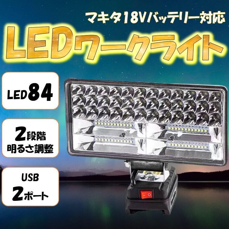 - 高輝度LEDモデル ワークライト マキタ互換 18V 投光器 作業灯 180W LED DIY 集魚灯 防災 非常灯 USBポート 釣り キャンプ 倉庫 ガレージ