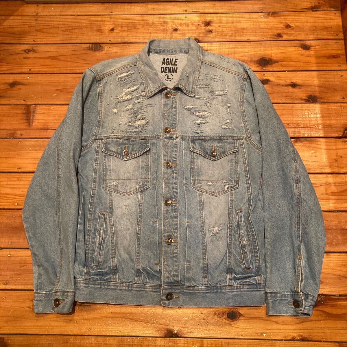 > AGILE DENIM クラッシュデニム ダメージデニム デニムジャケット Gジャン Lサイズ アメリカ古着 USA古着