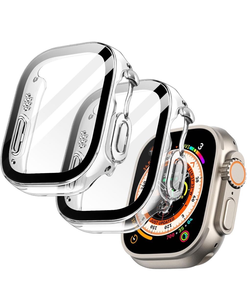 - 【2個入り】Apple Watch カバー Ultra/Ultra2 対応アップルウォッチ 49mm 保護ケース、PC素材と強化ガラスフィルム一体型 保護ケースクリア