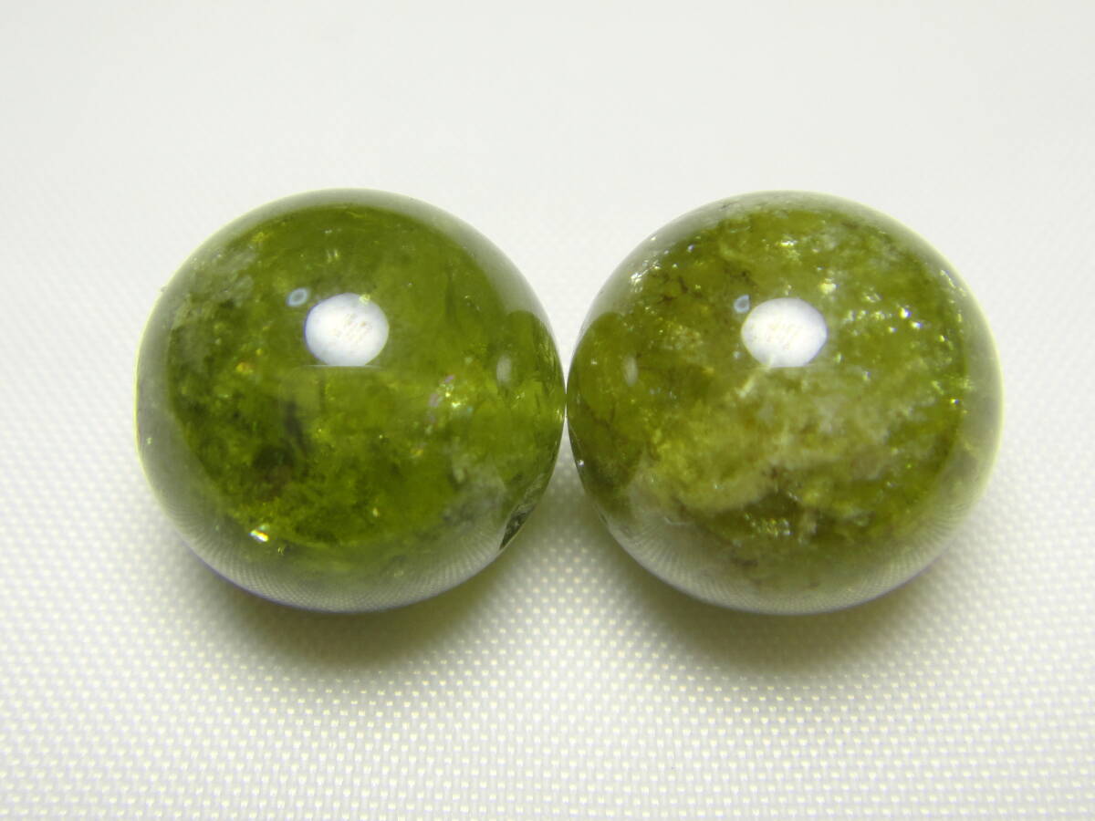 - 天然石 グリーンガーネット 約11㎜玉 2個セット Y420