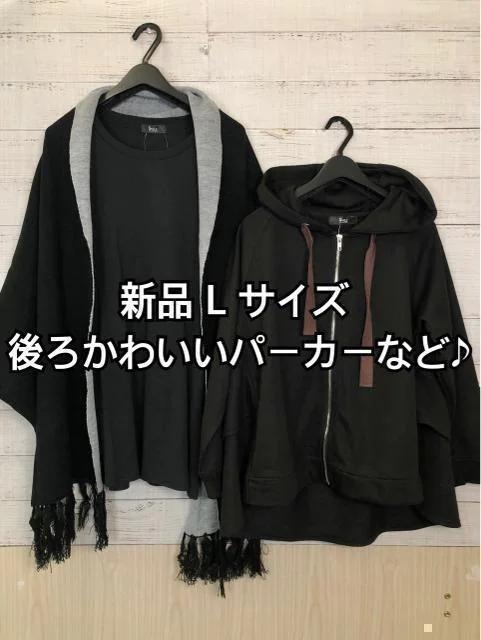 - 新品☆L♪黒系♪後ろかわいいパーカーとストールカーディガンのセット☆y827