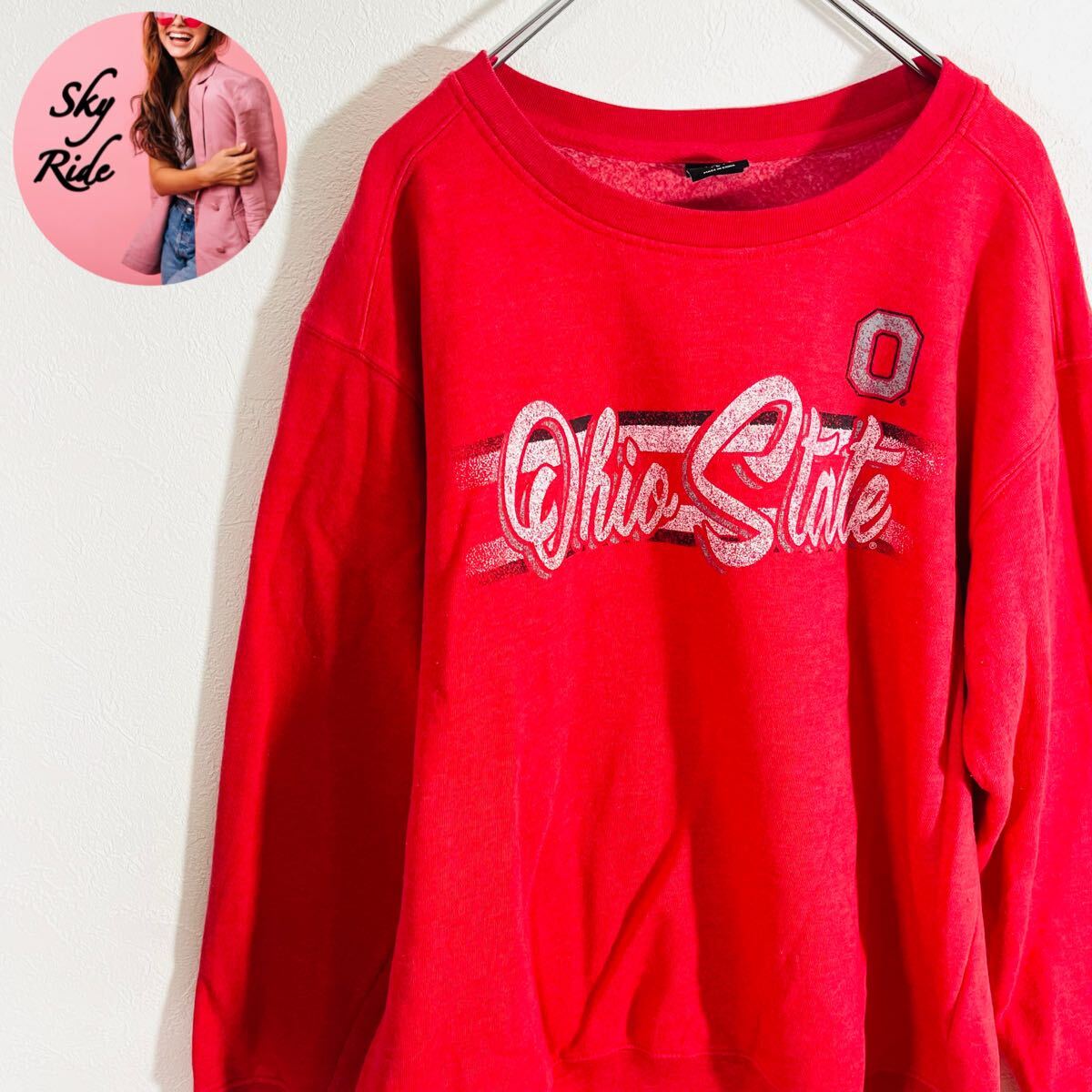 > OHIOSTATE オハイオステート メンズ ヴィンテージ ビッグプリント プルオーバースウェット トレーナー レッド L 古着 #TB1013