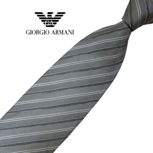 > ★高級ネクタイ★ストライプ柄★GIORGIO ARMANI★グレー系 レジメンタル ネコポス可 アルマーニ USED プレス済み t1081