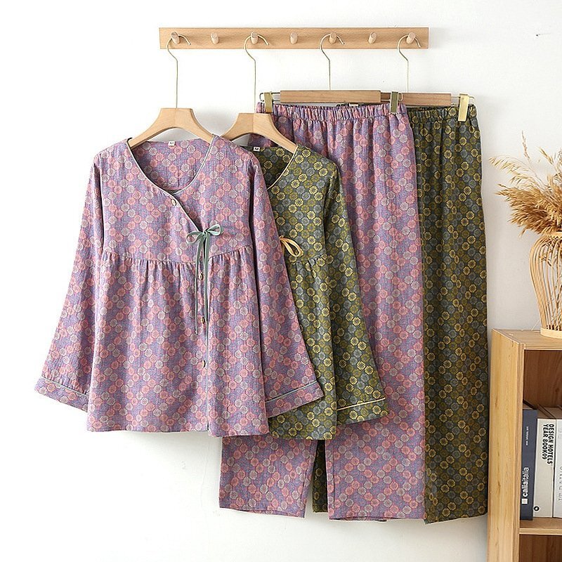 - ☆新品パジャマ レディース ダブルガーゼ 敬老の日 ギフト 2重ガーゼ パジャマ 綿 前開き 人気 快眠 睡眠の質 ☆2色/M-XLサイズ選択