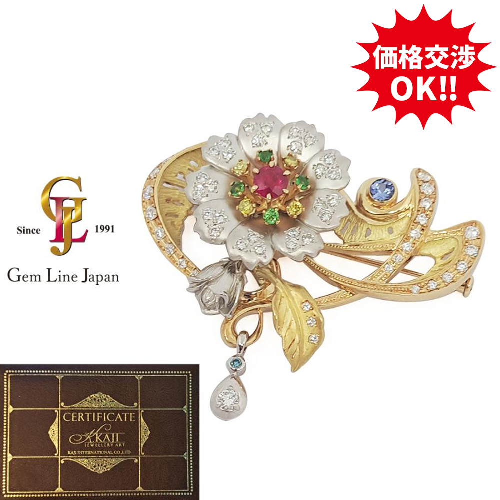 - K18/Pt900 梶光夫 ルビー 0.55ct ダイヤモンド 1.20ct マルチカラー ブローチ トップ