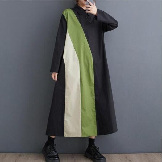- OHJ554★不規則上質 長袖 マキシ丈 ワンピース 体型カバー きれいめ 大人 配色 切り替え 大きいサイズ ロングワンピース黒Fお色選択可