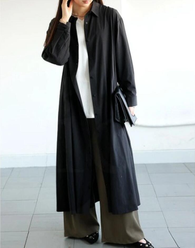 - 春秋 /オシャレ ワンピース レディース シャツワンピース アウター ロングワンピース きれいめ 通勤 長袖 着痩せ マキシワンピース/ 黒