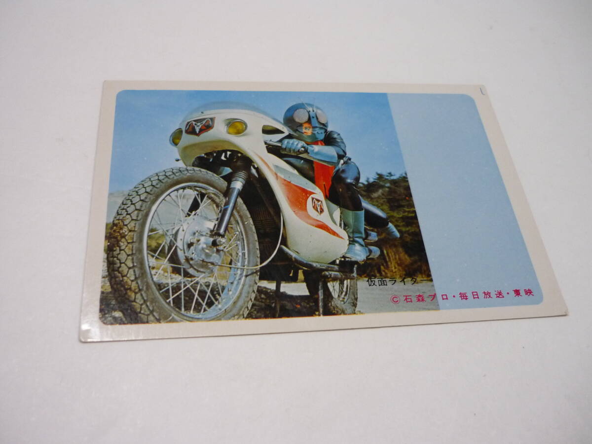 - [管00]【送料無料】カード 駄菓子屋 サイクロン号 仮面ライダー 横 当時物 石森プロ 東映 特撮 ブロマイド L版