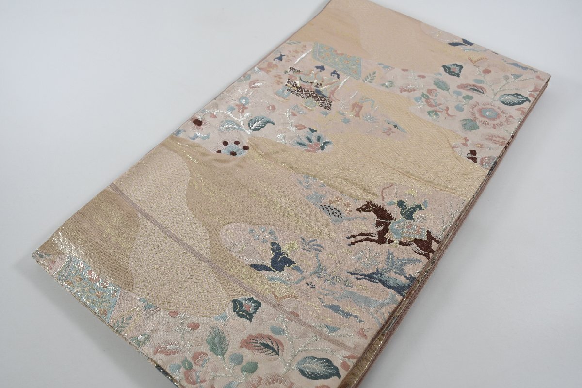 - 袋帯 六通柄 人物文様 馬 花 帯丈424cm ★着物屋 ne-13001 桜庭呉服店