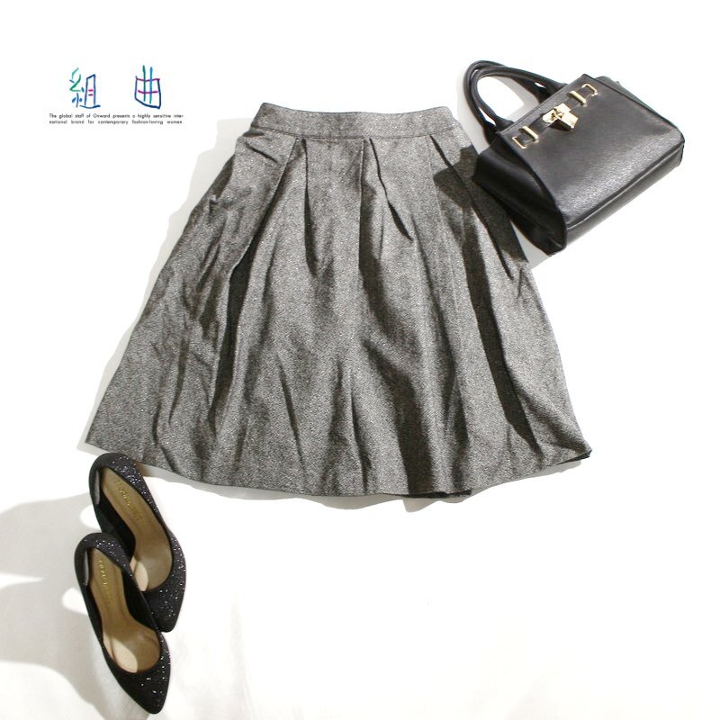 - 美品 組曲 クミキョク 株) オンワード樫山 秋 冬 大人可愛い カシミヤ混 ラメ ウールスカート 1 ホワイト 白 ブラック 黒 綺麗め フォーマ