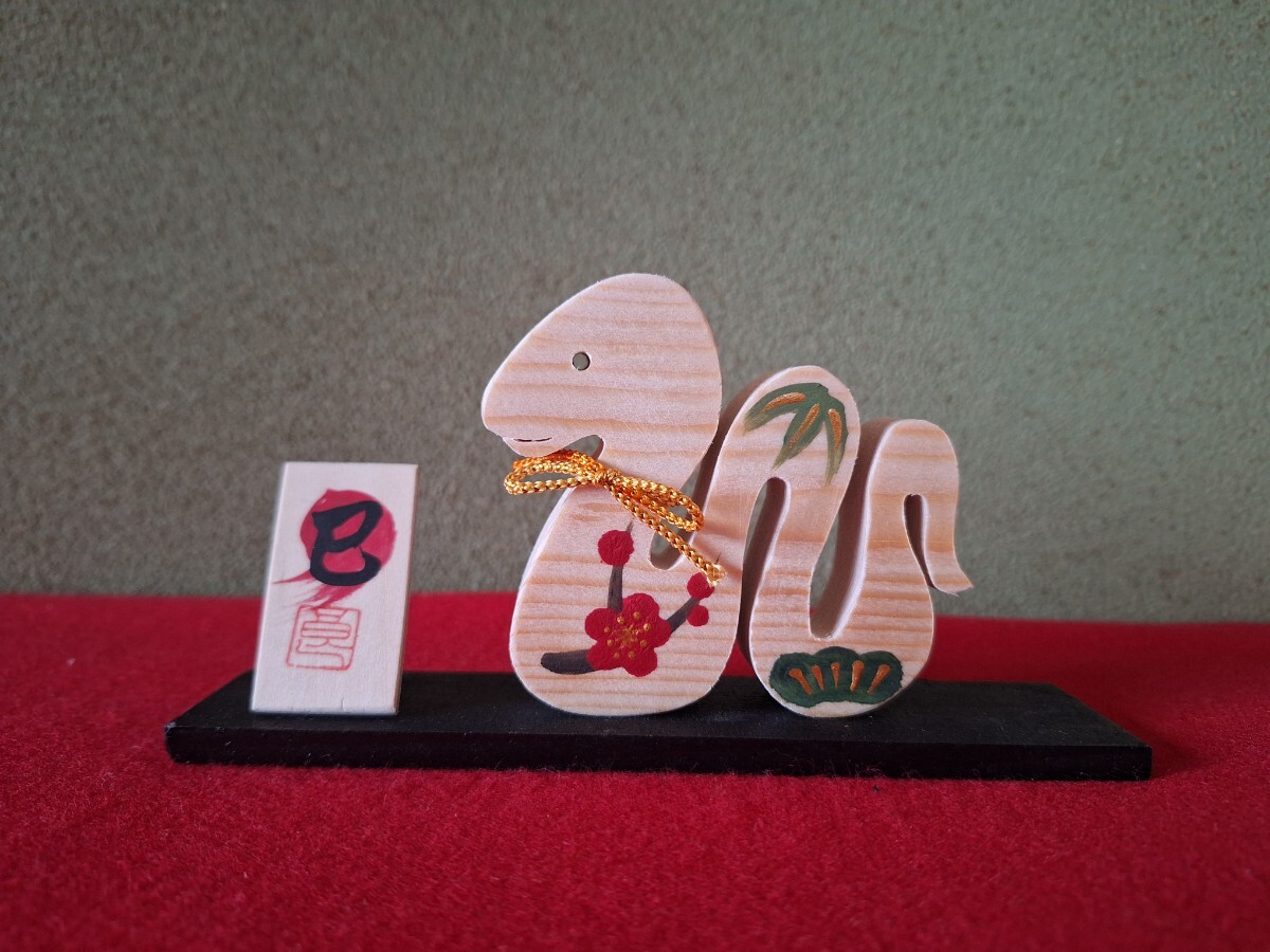 - 2025年干支 松竹梅ヘビ(木工アート)