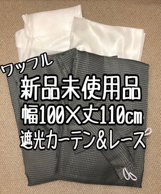 - 新品☆幅100×丈110㎝グレー系♪シンプル遮光カーテン&レース〇A691