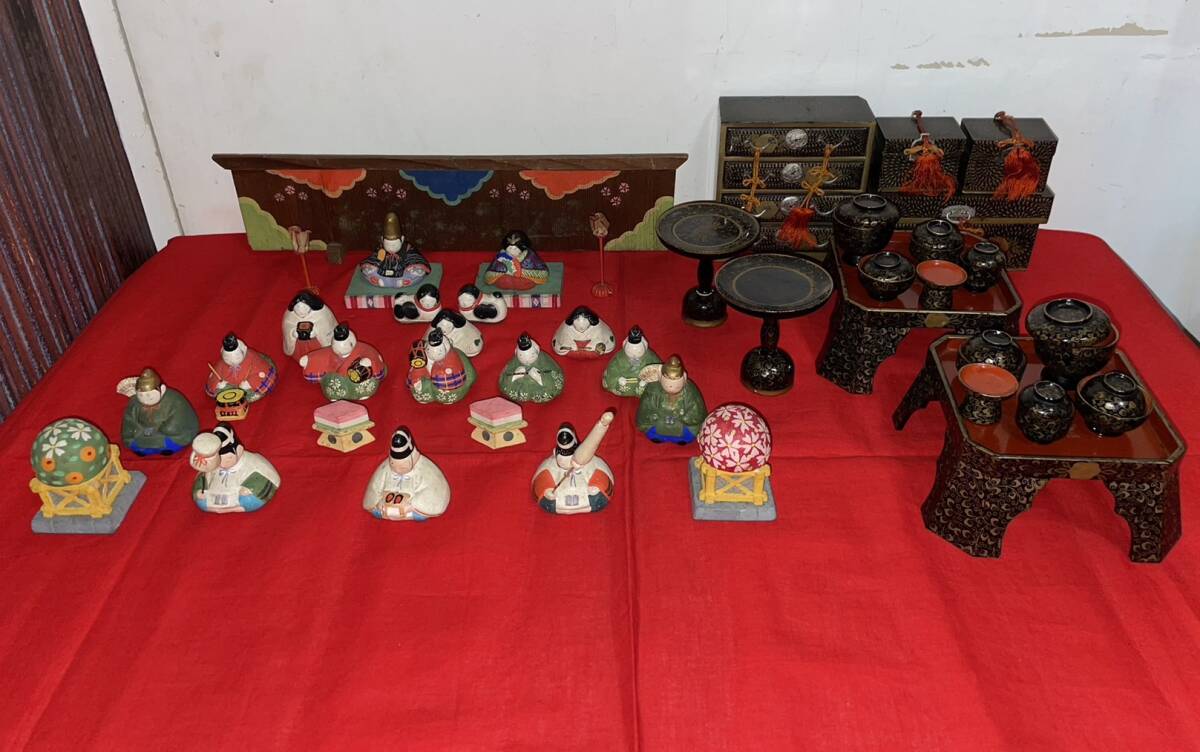 - 【No.1249】ヴィンテージ 大正~昭和初期頃 ミニチュアサイズ 雛人形 雛道具 土人形 元箱蓋欠品 中古品 現状品