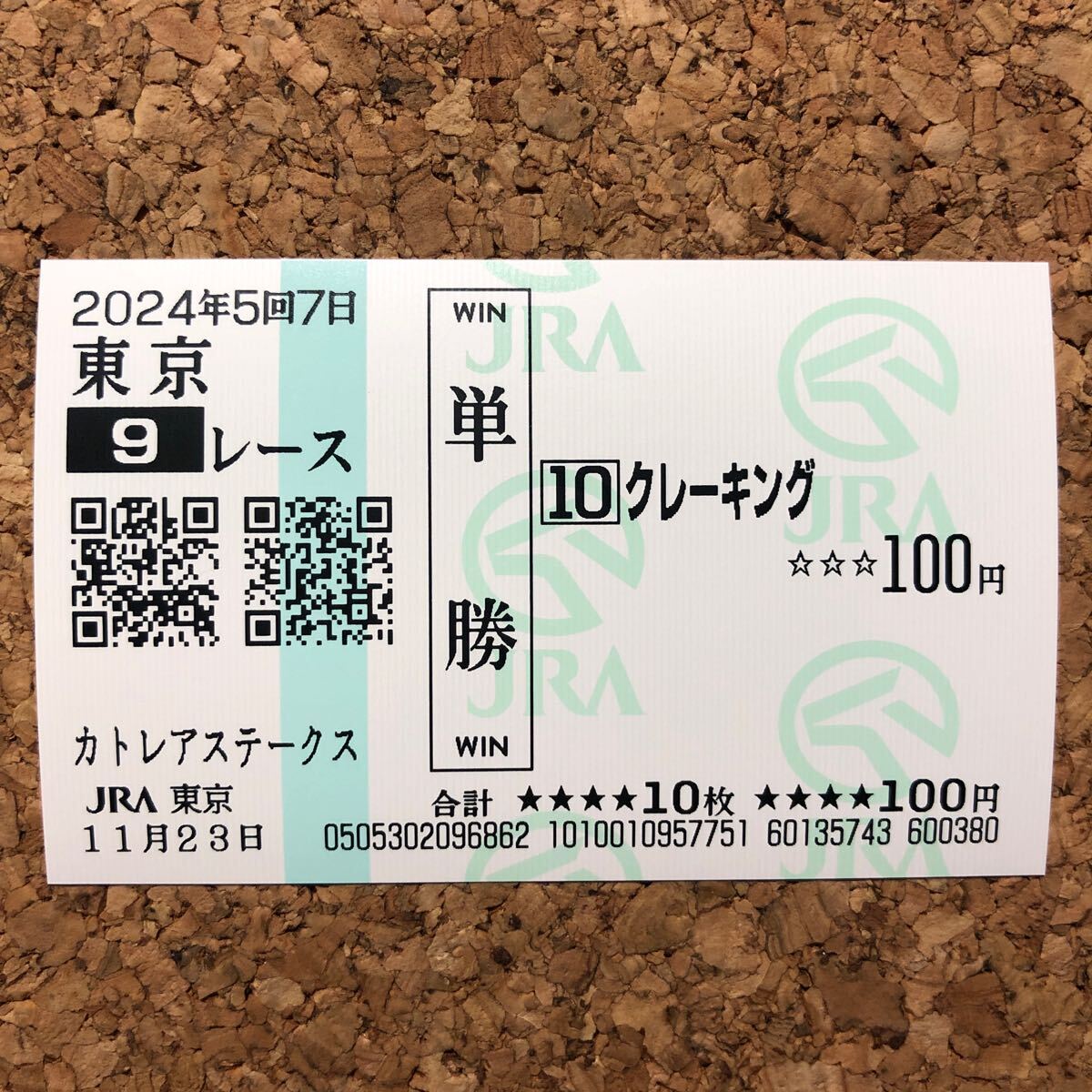 - クレーキング カトレアS 現地購入単勝馬券 2024 ルメール 東京競馬場